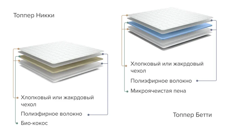 Состав "жесткого" и "мягкого" топперов на примере Nikki и Betty