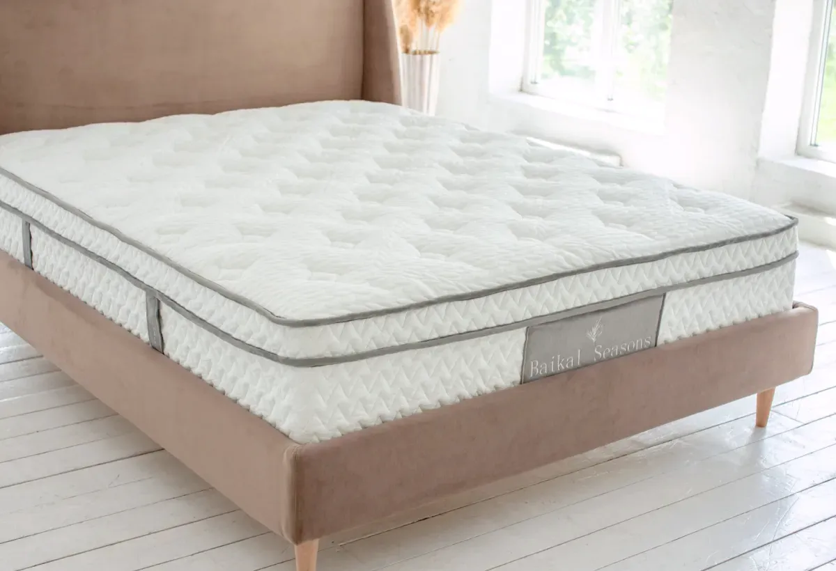 Погрузитесь в атмосферу спокойствия и комфорта с матрасом Baikal Season Зима/ Этот матрас, как снежное одеяло Байкала, дарит ощущение тепла и защищённости, сохраняя при этом ортопедические свойства для здорового сна.