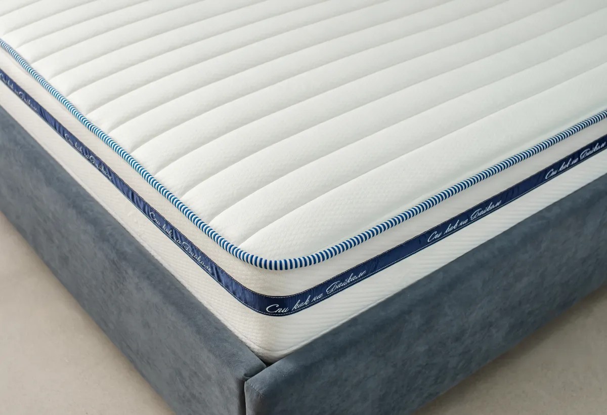 Особенности серии JustСерия матрасов Just предлагает идеальное сочетание стиля и комфорта, создавая уютную атмосферу в вашей спальне. Каждый матрас из этой серии отличается аккуратной отделкой с голубым кантом по краю, что придает ему современный и элегантный вид. Мягкая ткань с едва заметным узором покрывает поверхность матраса, обеспечивая не только визуальную привлекательность, но и невероятный комфорт.